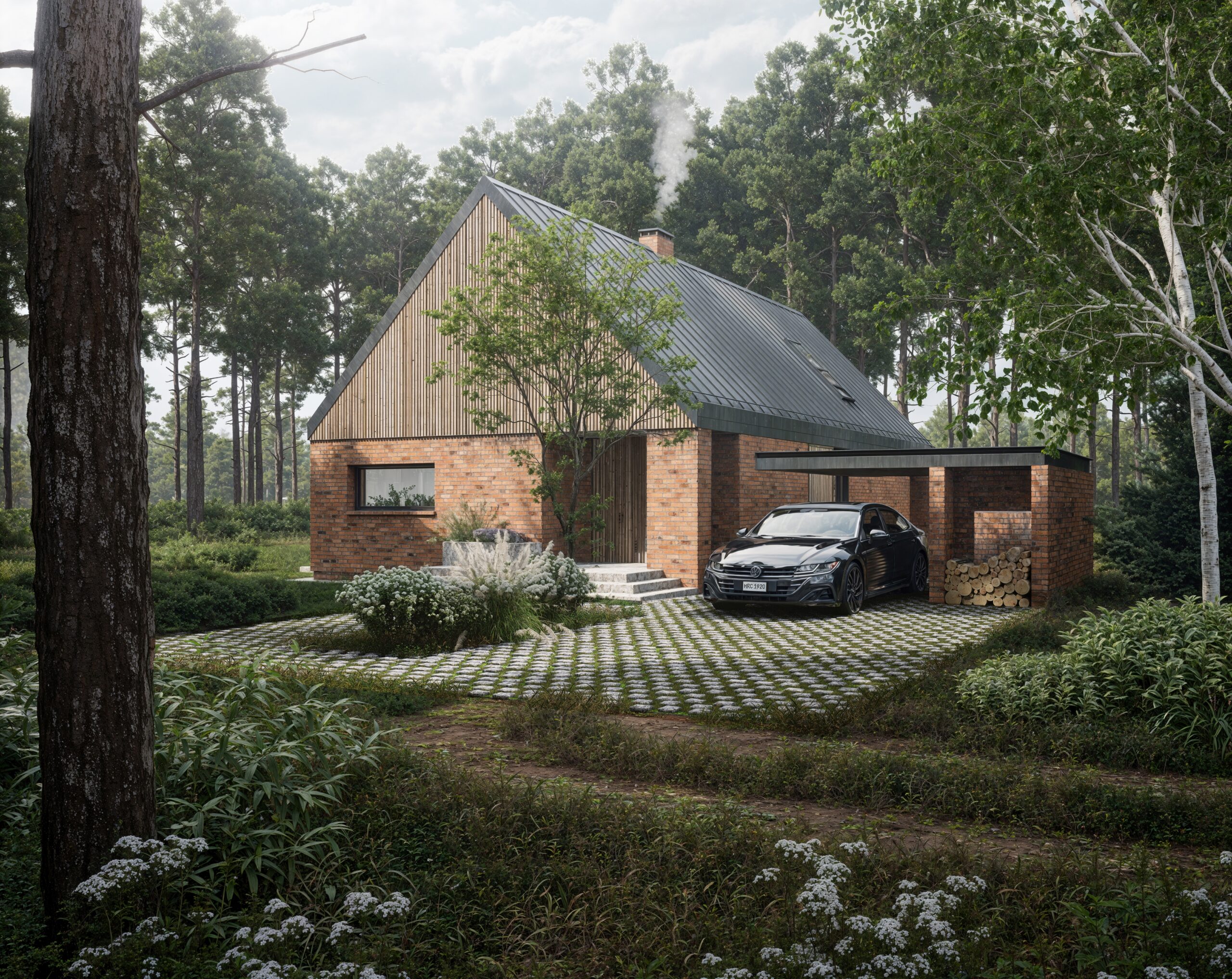 Opracowanie Dom jednorodzinny wolnostojący z wiatą samochodową – projekt budowlany oraz wykonawczy